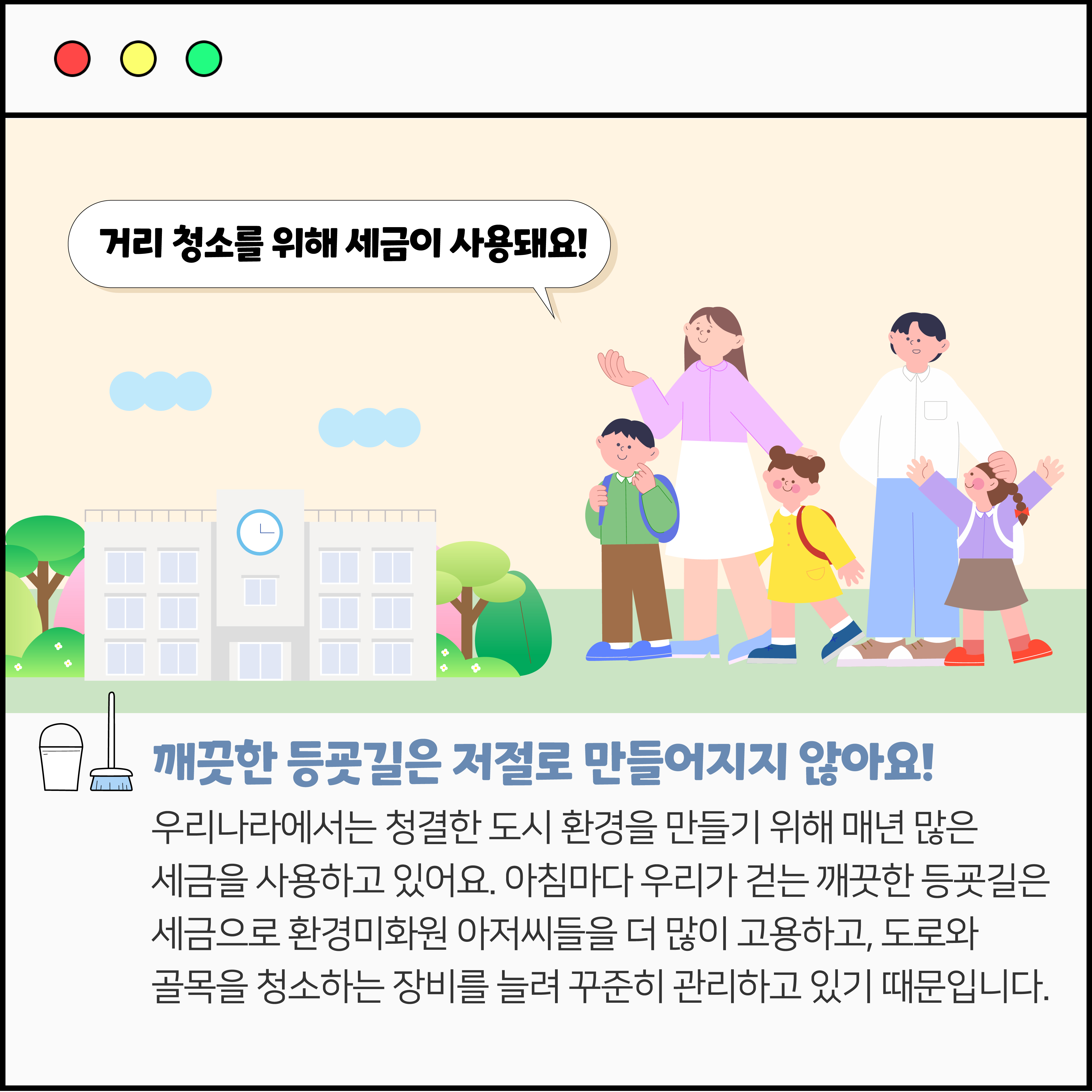 OO이 우리 집 앞을 깨끗하게 지켜줘요! 작성자 정보 국세청어린이신문 작성 작성일 2026.02.04 22:50 컨텐츠 정보 15 조회 목록 본문 그 많던 쓰레기는 누가 치웠을까요? 관련자료 등록된 댓글이 없습니다. 로그인한 회원만 댓글 등록이 가능합니다. 목록