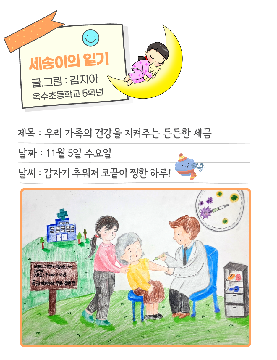 세송이의일기 분류 우리 가족의 건강을 지켜주는 든든한 세금 작성자 정보 국세청어린이신문 작성 작성일 2025.11.05 22:39 컨텐츠 정보 11 조회 목록 본문 세송이의일기 우리 가족의 건강을 지켜주는 든든한 세금 관련자료 목록