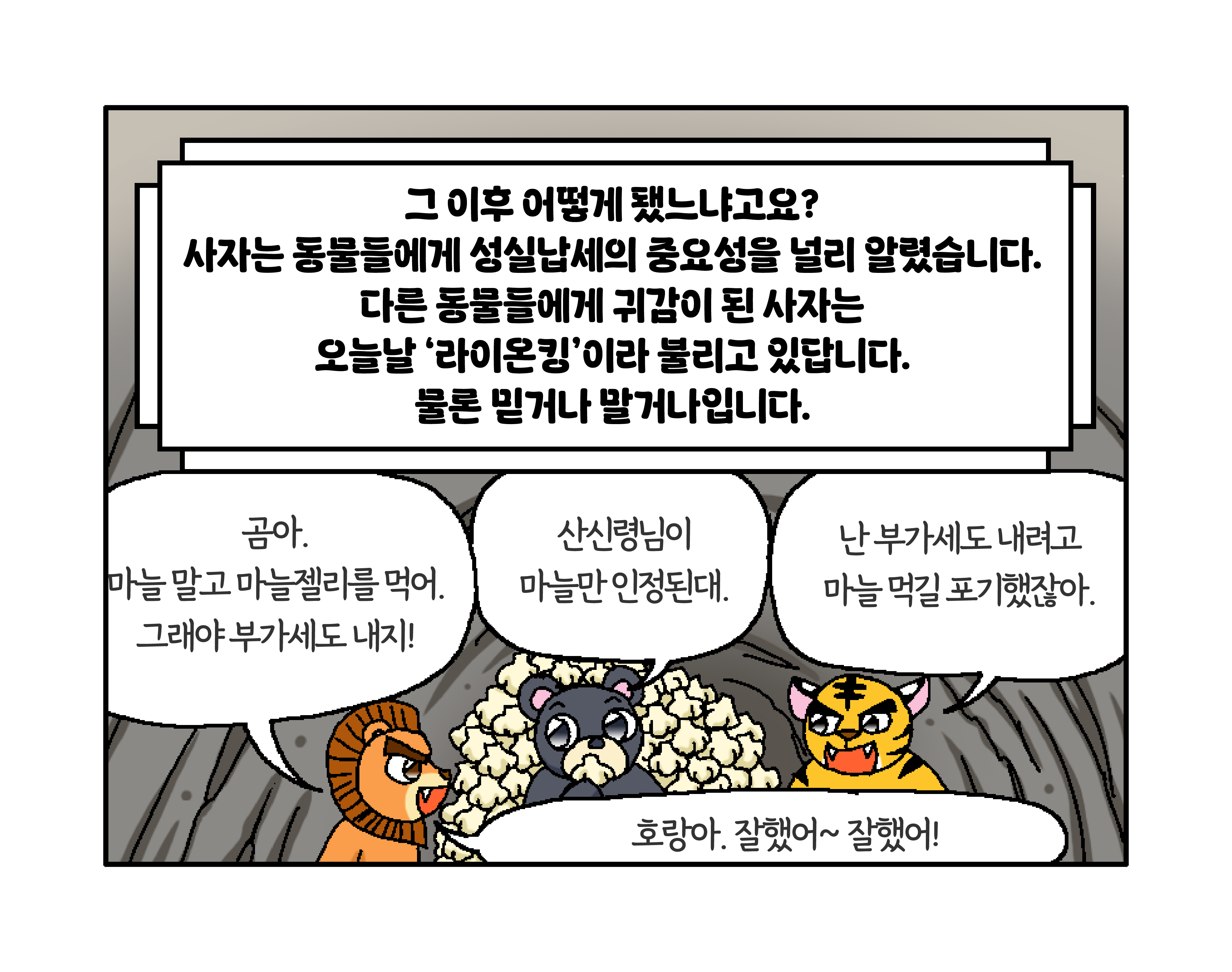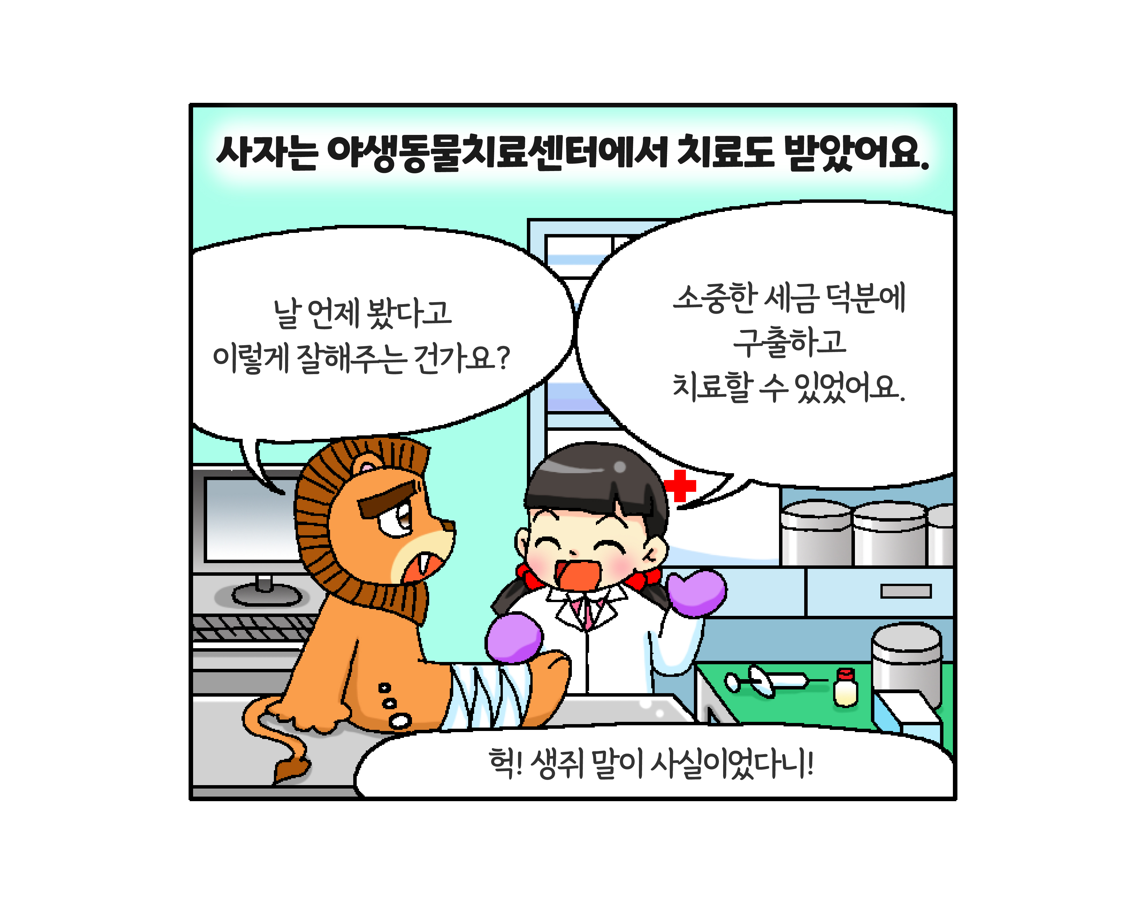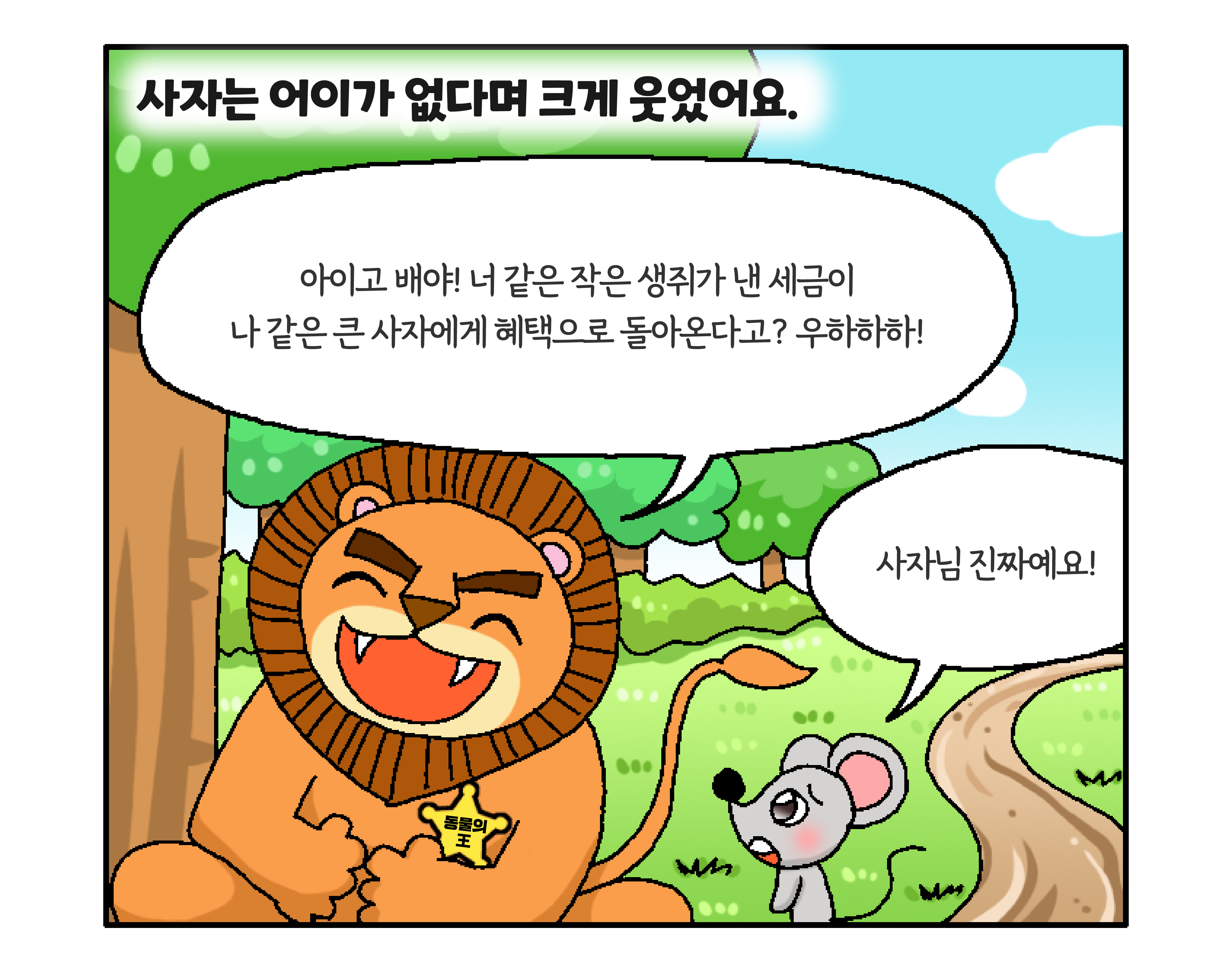 세금이 숲과 동물 친구들을 지켜줍니다! 작성자 정보 국세청어린이신문 작성 작성일 2026.01.27 11:34 컨텐츠 정보 134 조회 목록 본문 생쥐가 사자를 구할 수 있었던 비결은? 관련자료 등록된 댓글이 없습니다. 로그인한 회원만 댓글 등록이 가능합니다. 목록