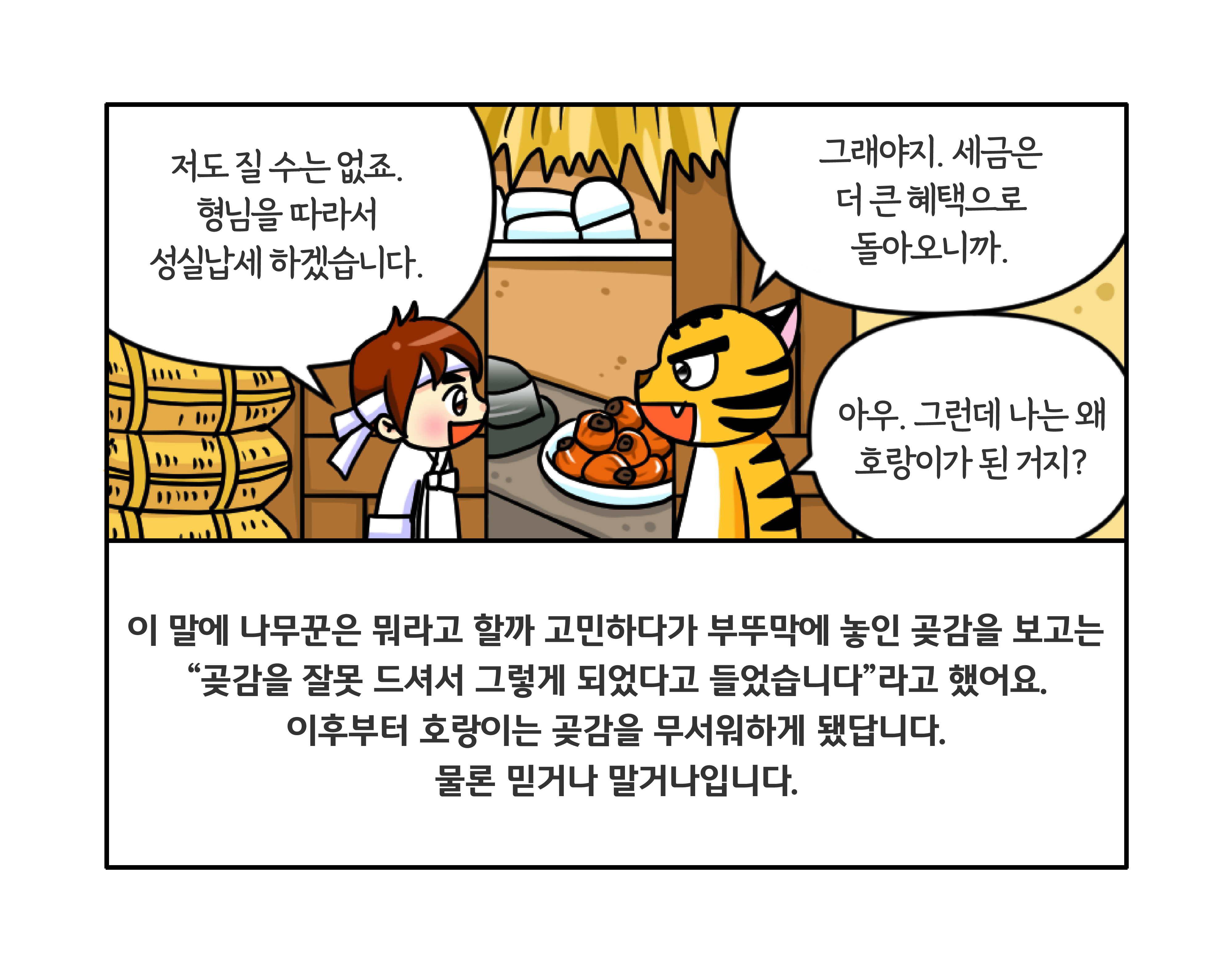 세금은 더 큰 혜택으로 돌아옵니다! 작성자 정보 국세청어린이신문 작성 작성일 2026.04.16 10:51 컨텐츠 정보 11 조회 목록 본문 호랑이가 성실납세한 결정적 이유는? 관련자료 등록된 댓글이 없습니다. 로그인한 회원만 댓글 등록이 가능합니다. 목록