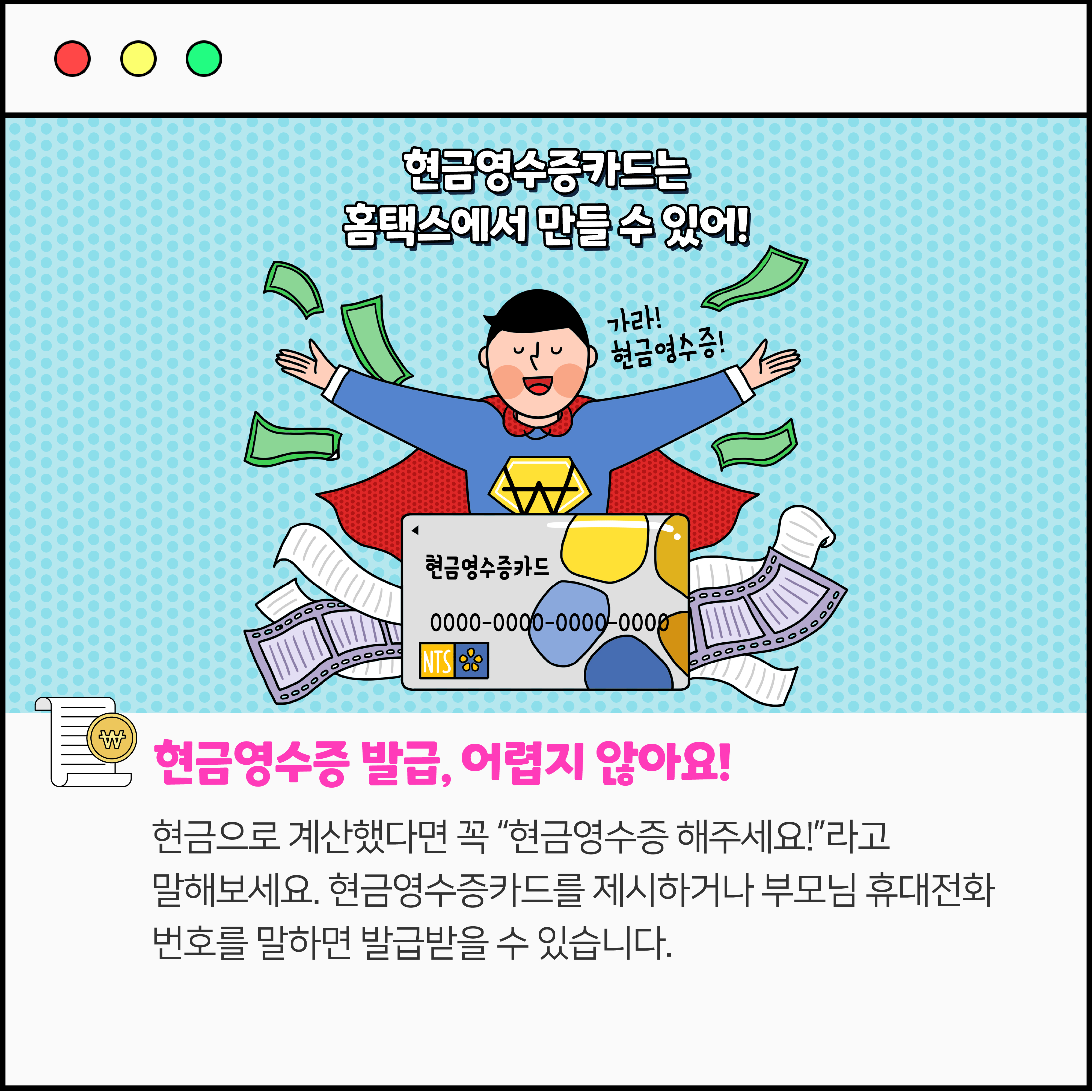 OO영수증 해주세요! 작성자 정보 국세청어린이신문 작성 작성일 2026.04.07 11:38 컨텐츠 정보 10 조회 목록 본문 현금으로 계산할 때 꼭 해야 하는 말! 관련자료 등록된 댓글이 없습니다. 로그인한 회원만 댓글 등록이 가능합니다. 목록